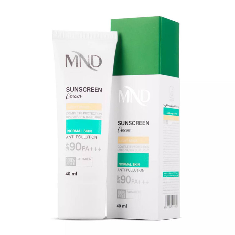 کرم ضد آفتاب با فاکتور حفاظتی 90 (SPF 90) مناسب پوست نرمال بـژ روشن ام ان دی 40 میلی لیتر