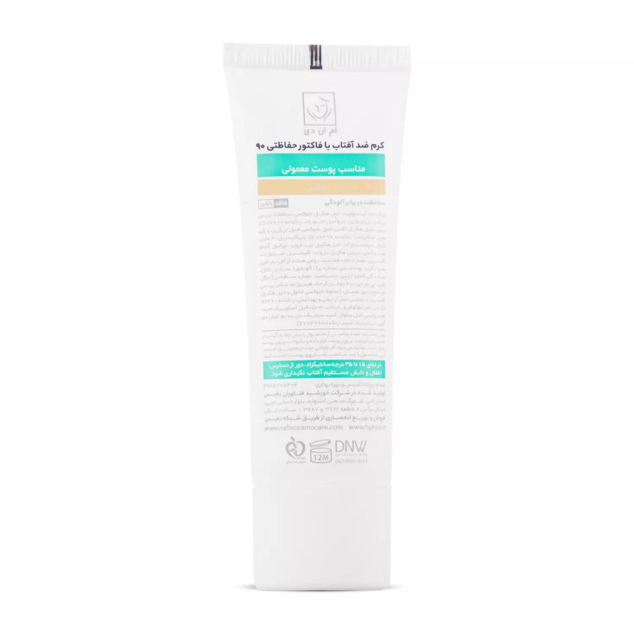 سایر توضیحات: کرم ضد آفتاب با فاکتور حفاظتی 90 (SPF 90) مناسب پوست نرمال بـژ روشن ام ان دی 40 میلی لیتر