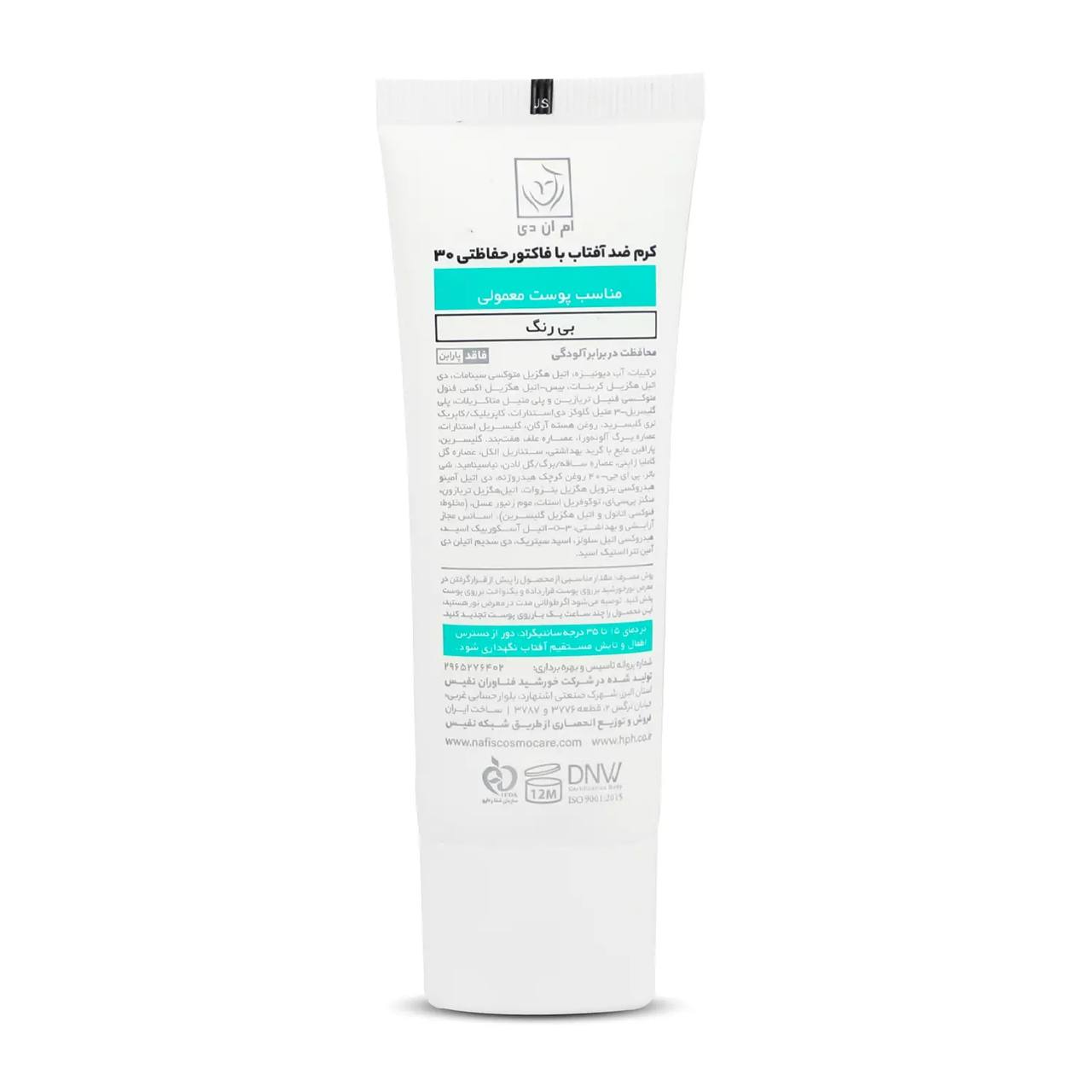 سایر توضیحات: کرم ضد آفتاب با فاکتور حفاظتی 30 (SPF 30) مناسب پوست معمولی ام ان دی 40 میلیلیتر