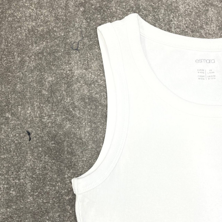 تاپ نیم تنه راه کبریتی جنس نخی است. پارچه کشسانی زیادی دارد. دور سینه تاپ 80 سانت است که تا 100 سانت هم کشسانی دارد. قد تاپ 45 سانت است. رنگ تاپ سفید است. پارچه تاپ بدن نمایی ندارد.