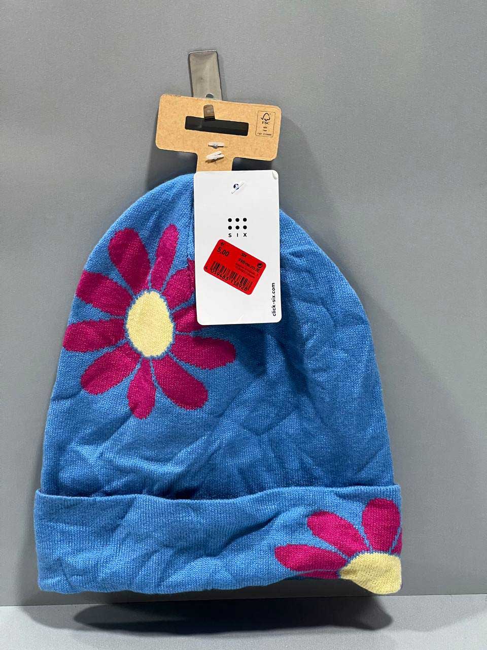 کلاه بافتنی آبی طرح گل Six مدل Daisy Bloom